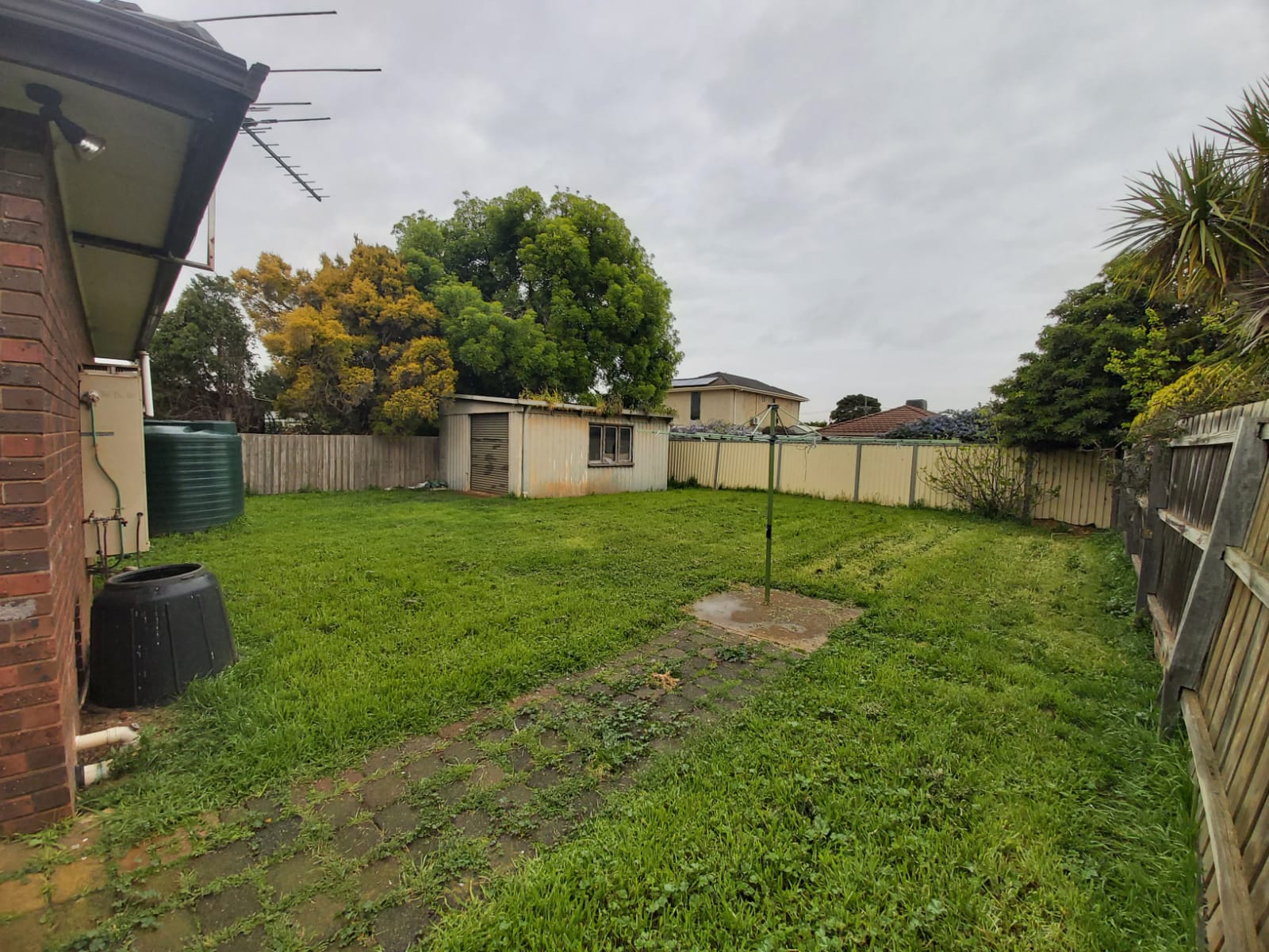 - Huge backyard with large shed and a pergola.