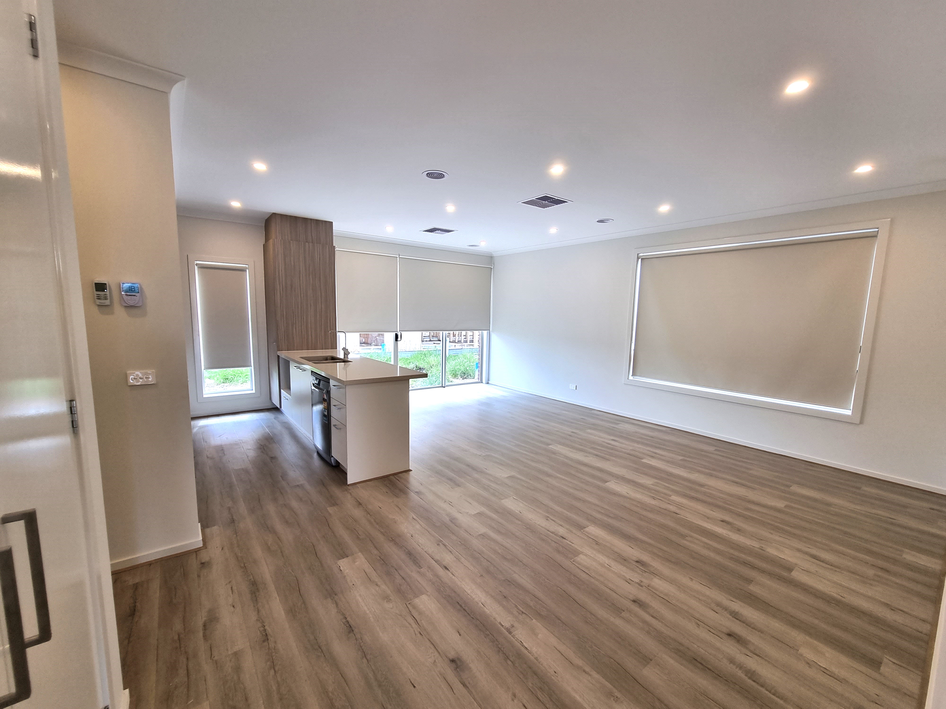 - Laminate flooring throughout the house in the living and kitchen areas