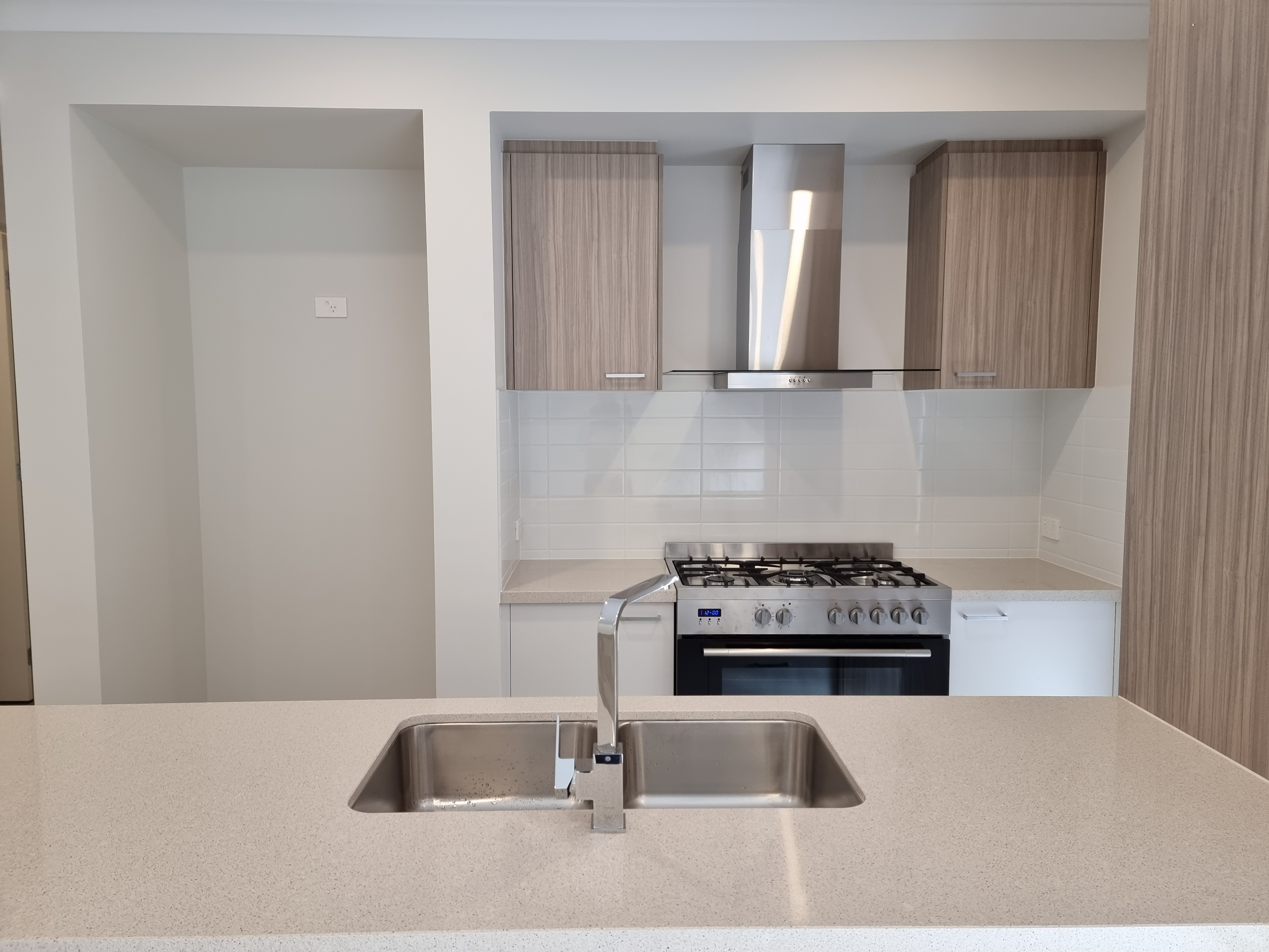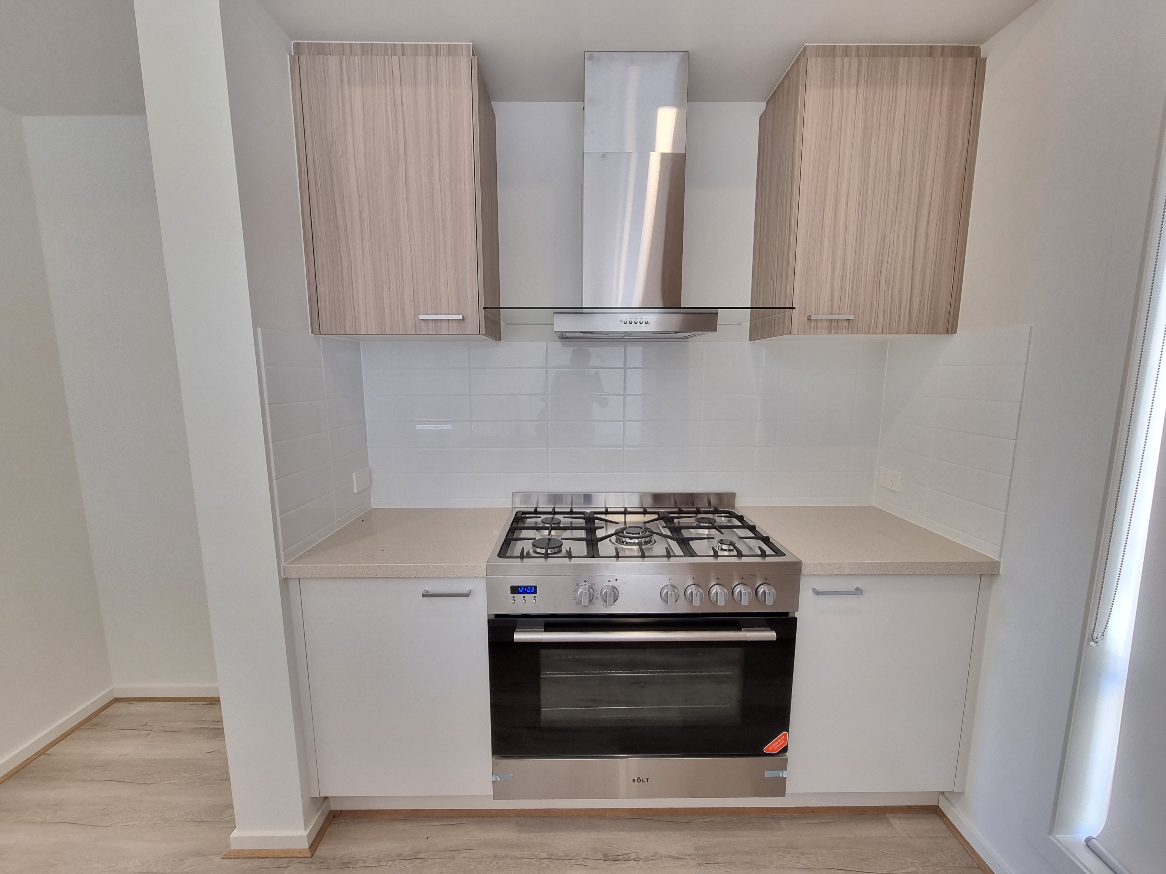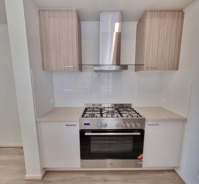 - Kitchen with stainless steel cooking appliances including 900 mm gas cooktop, range hood, dishwasher and pantry