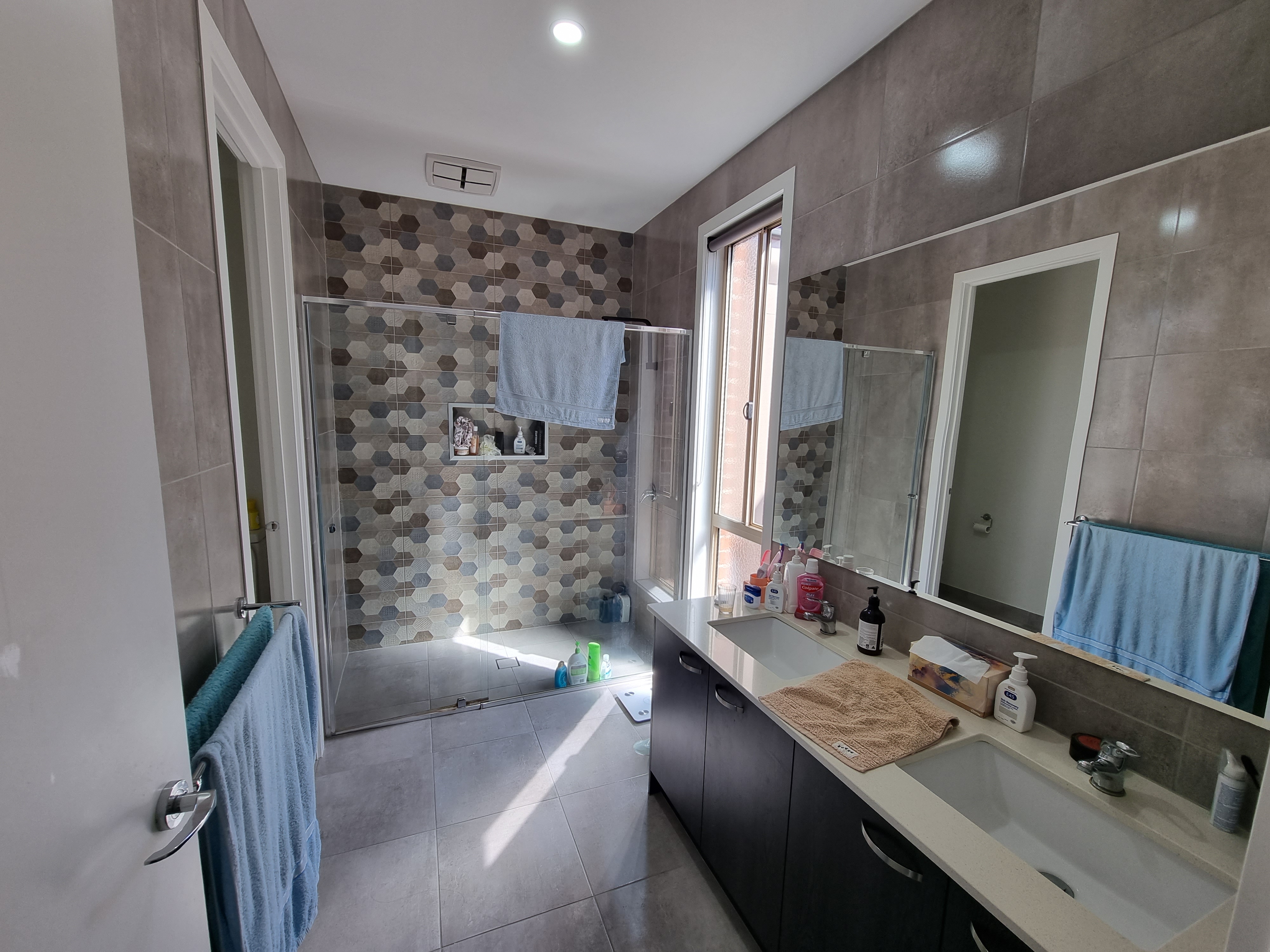 - Main bathroom with separate bath and shower