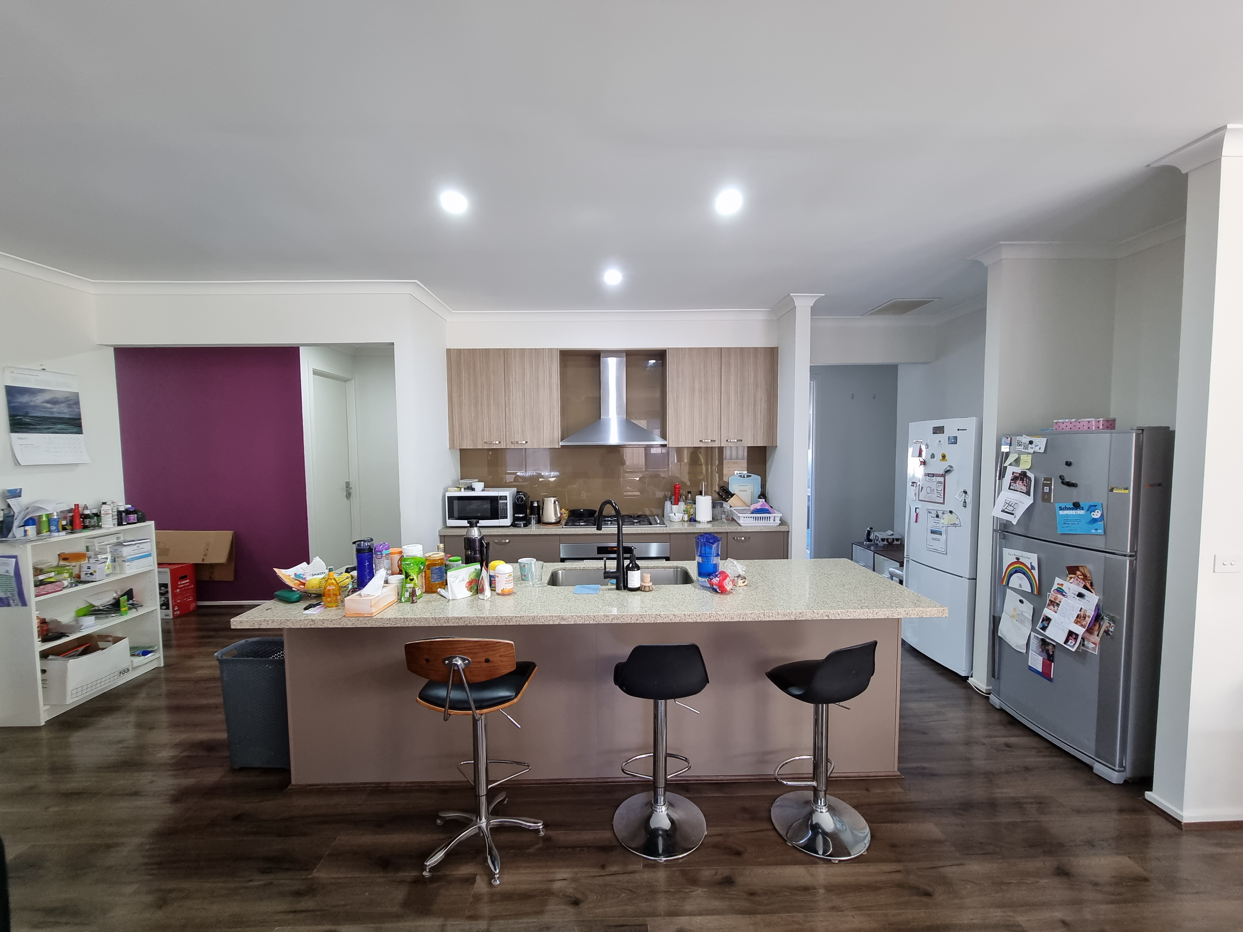 - Modern kitchen with gas top cooking and stone benches