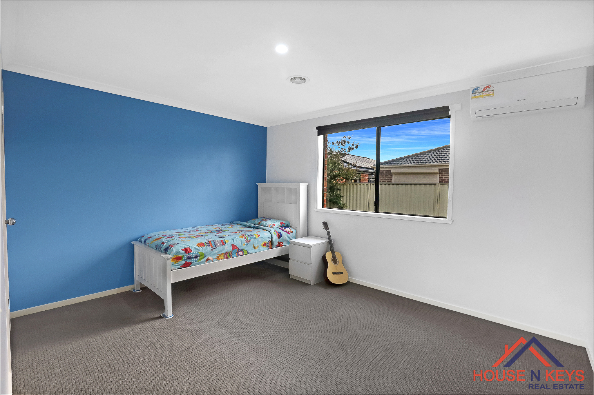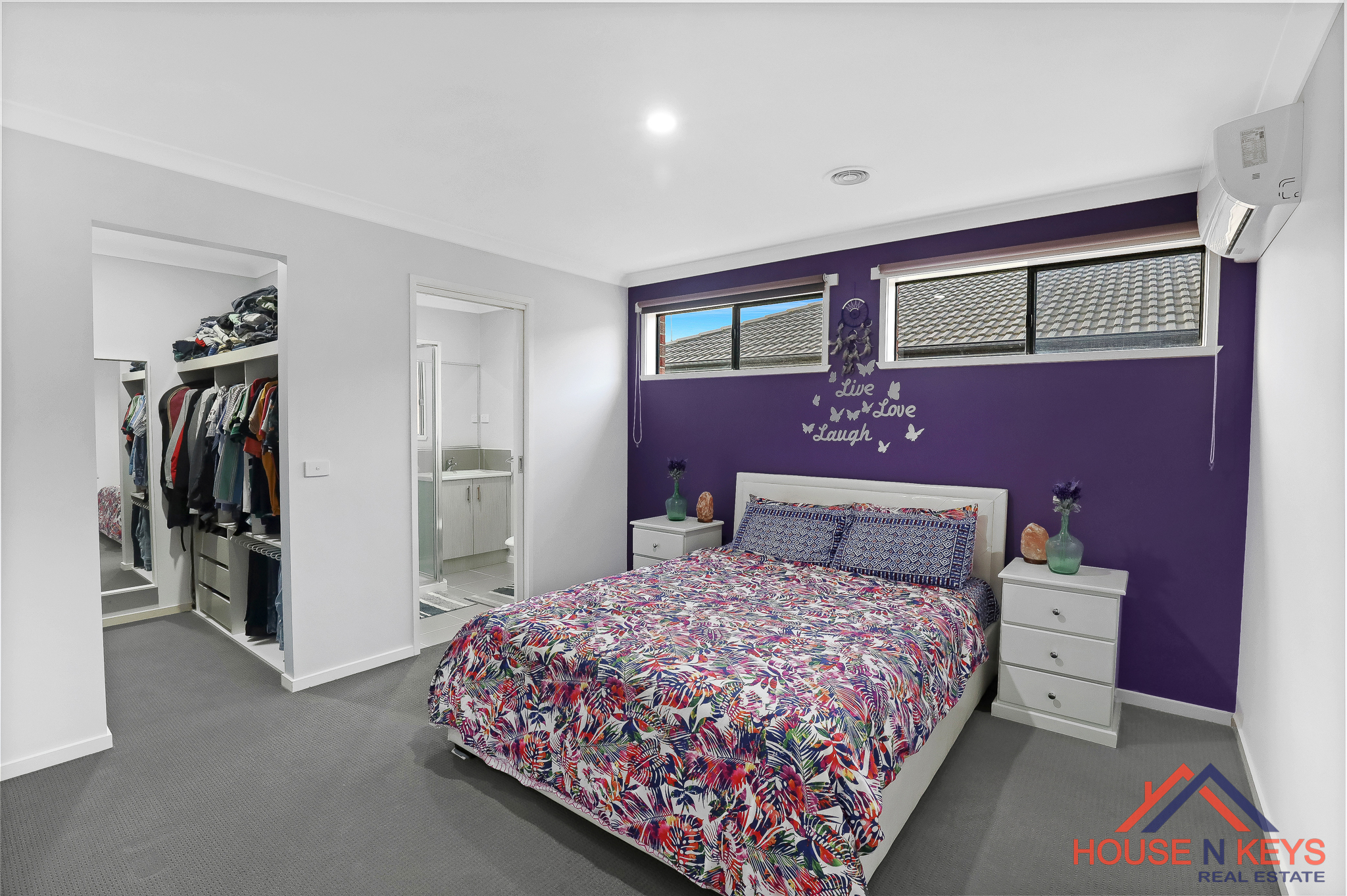 - The master bedroom features air conditioning, an en-suite bathroom, and an extensive walk-in robe.