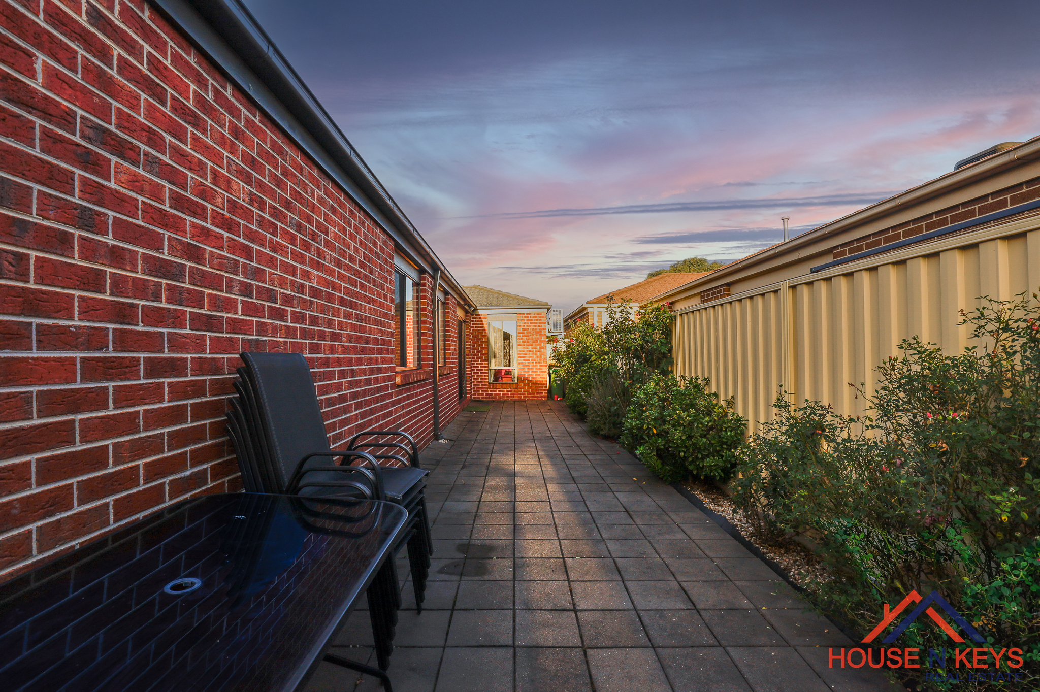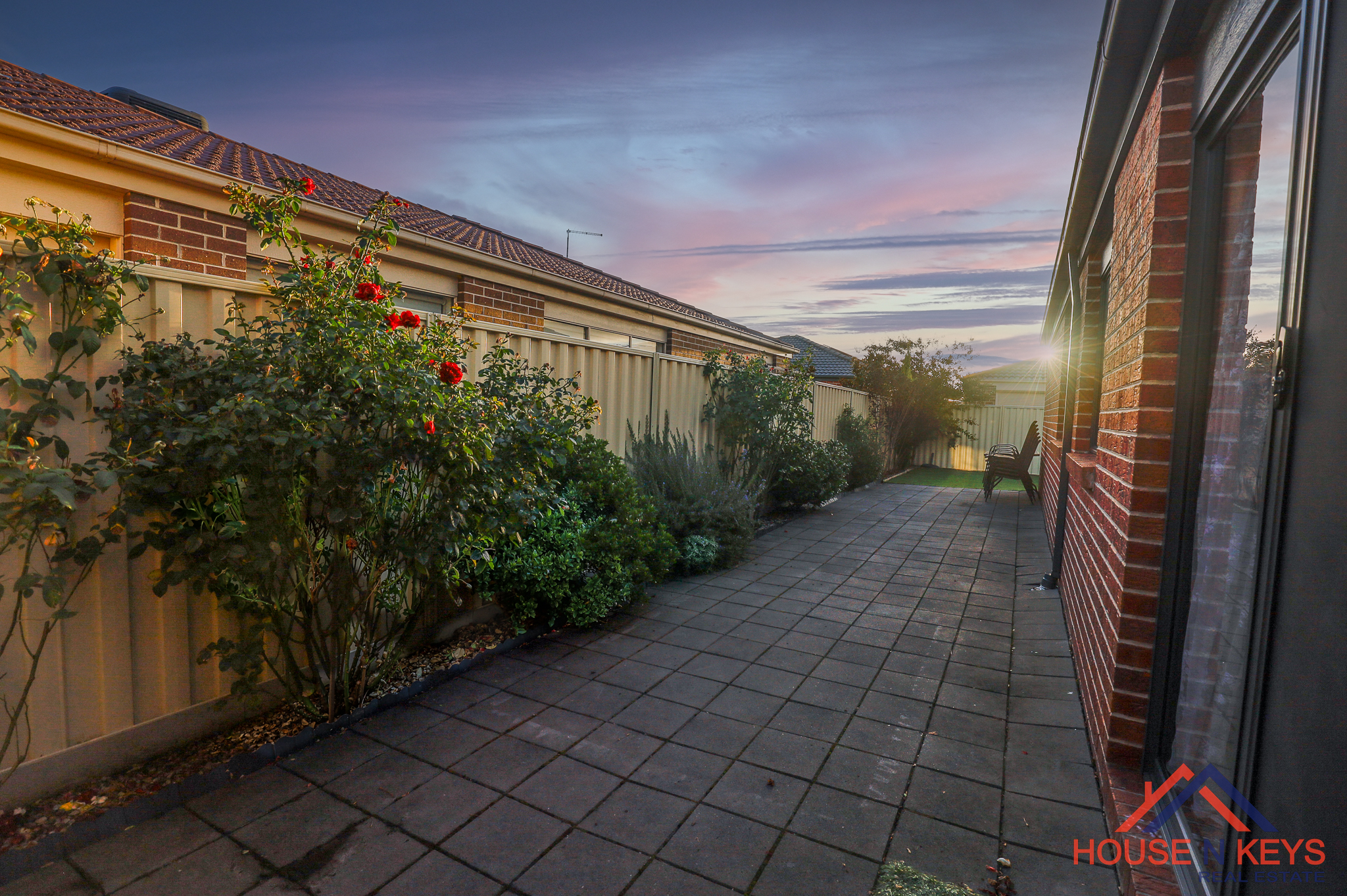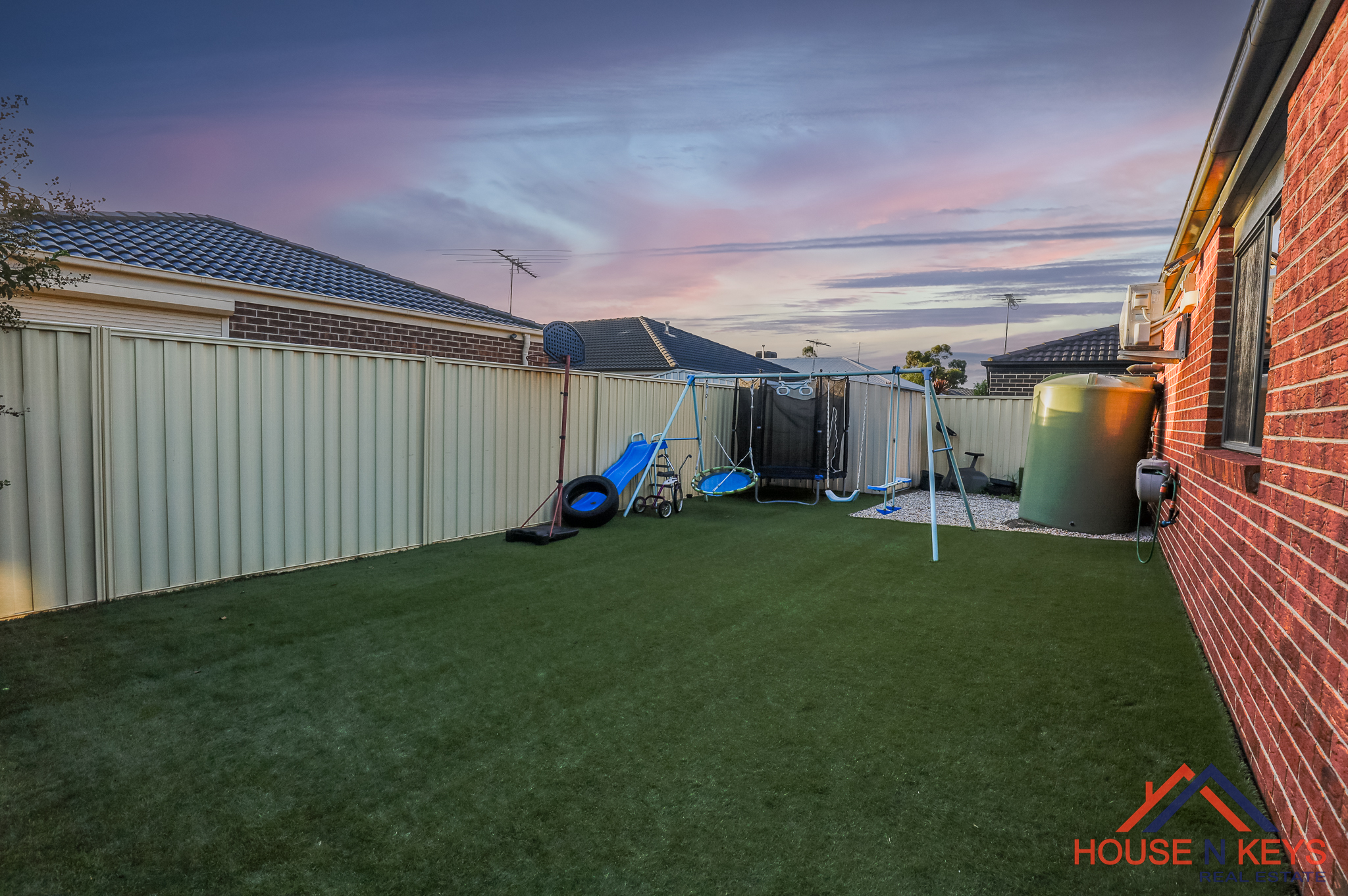 - A large, fully fenced backyard ensures privacy and artificial lawn which requires minimal maintenance.