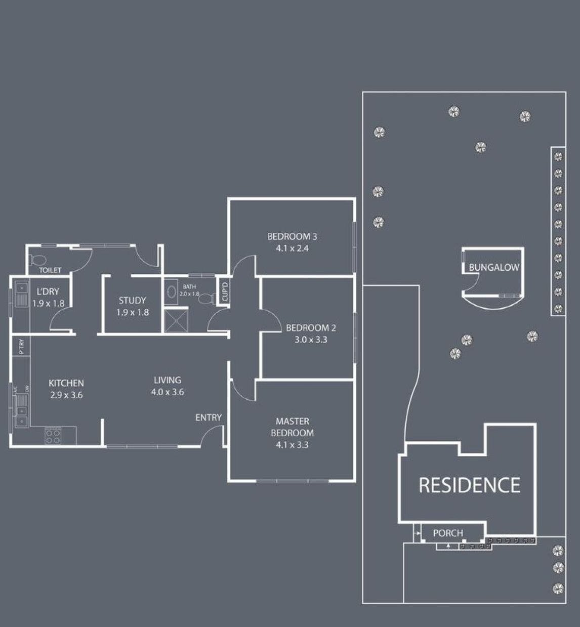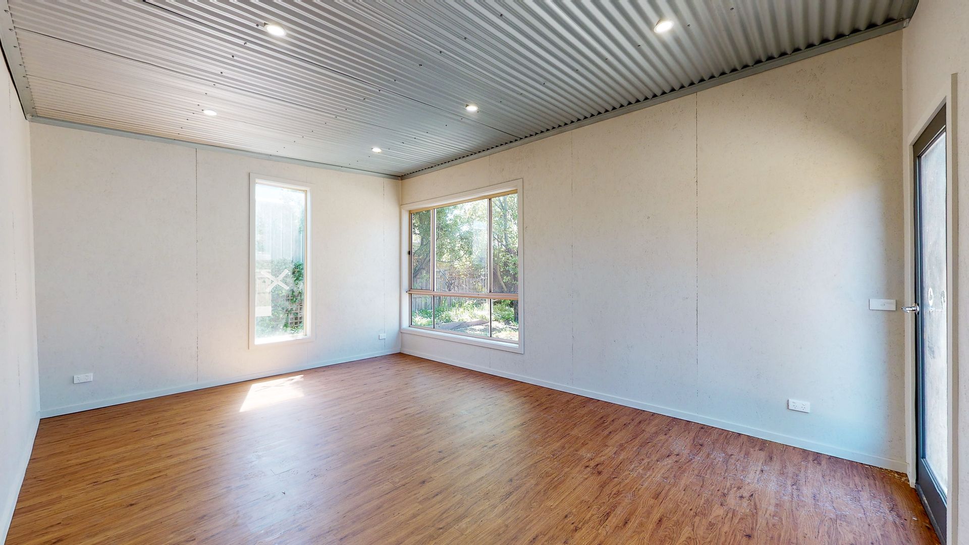 Additional bungalow provides extra living or workspace.