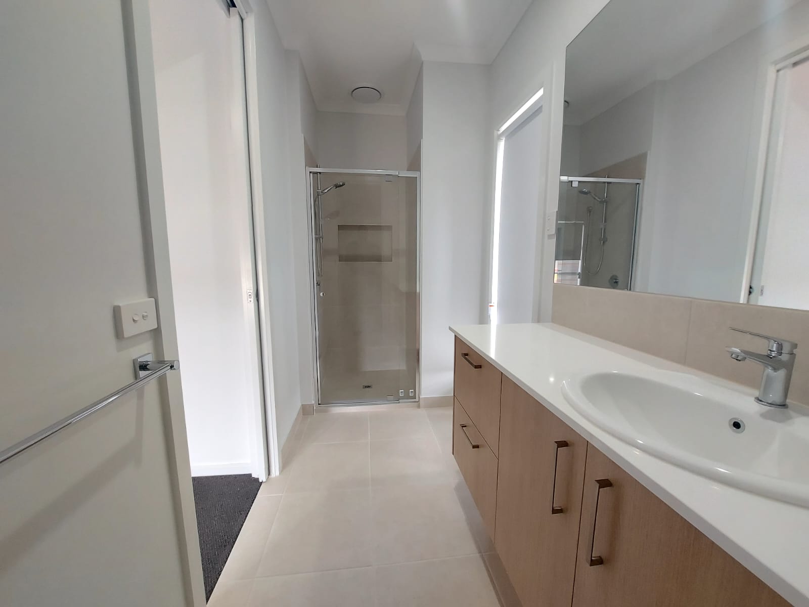 • Central bathroom with tiled shower bases in bath and ensuite
