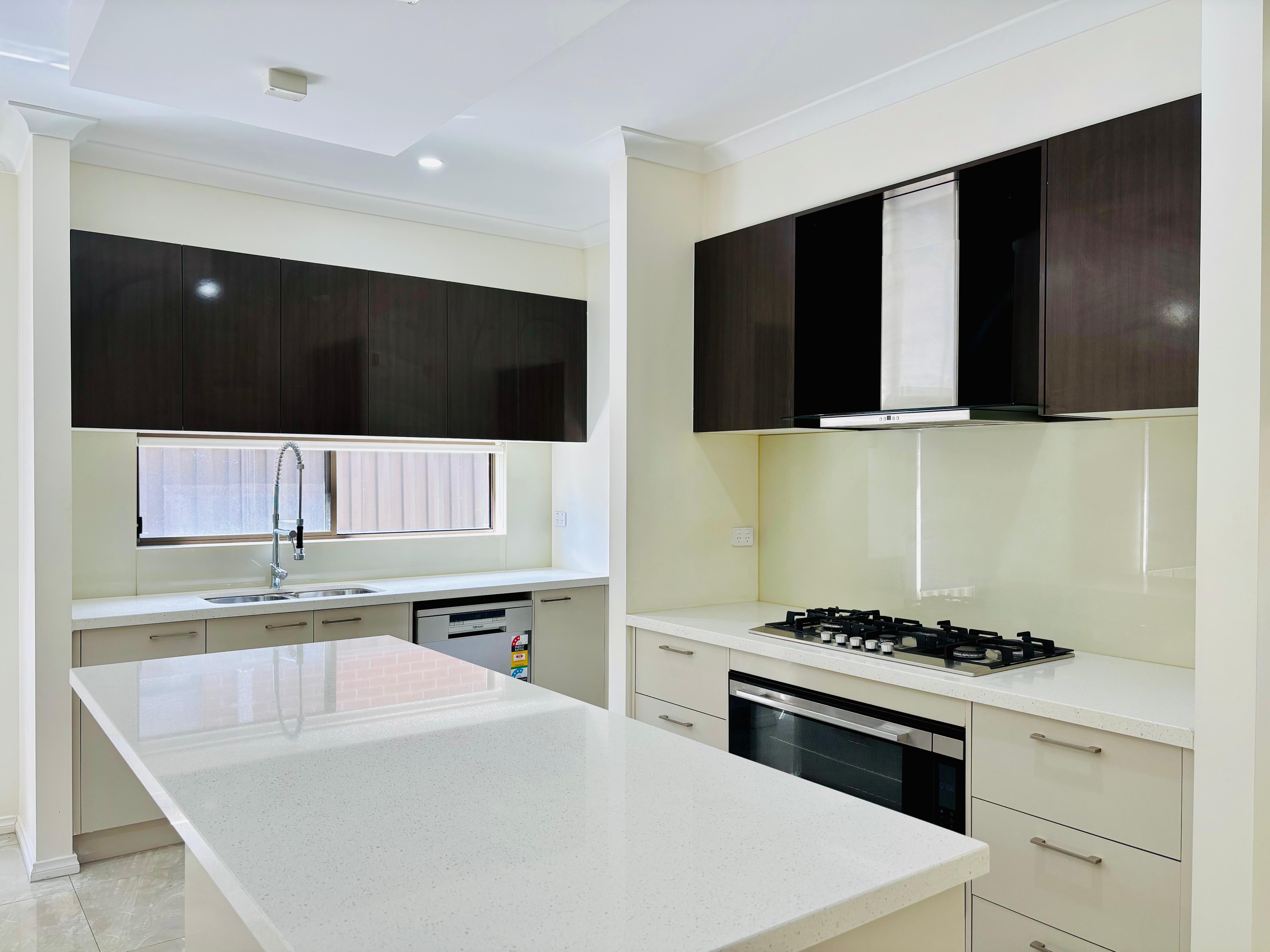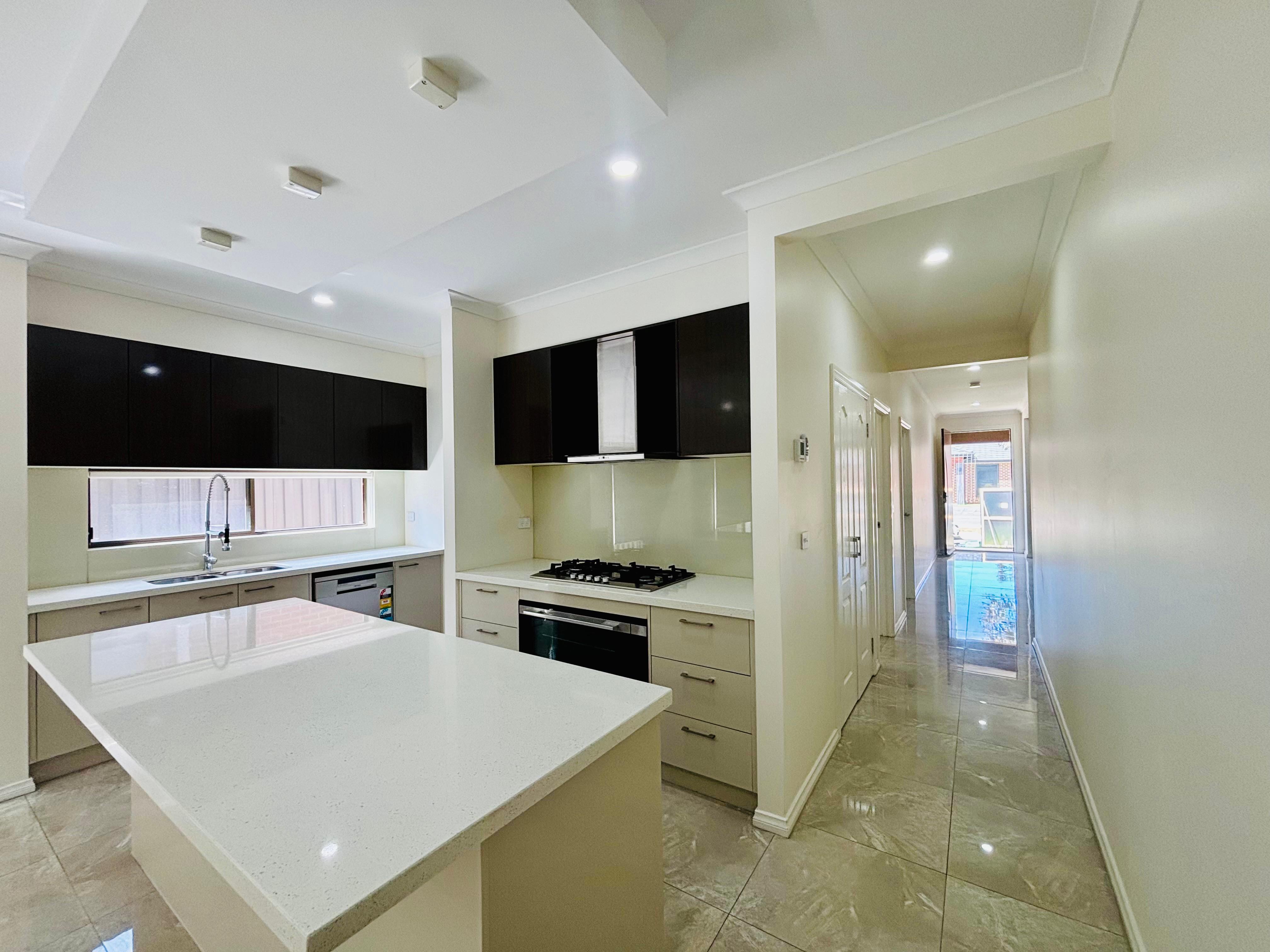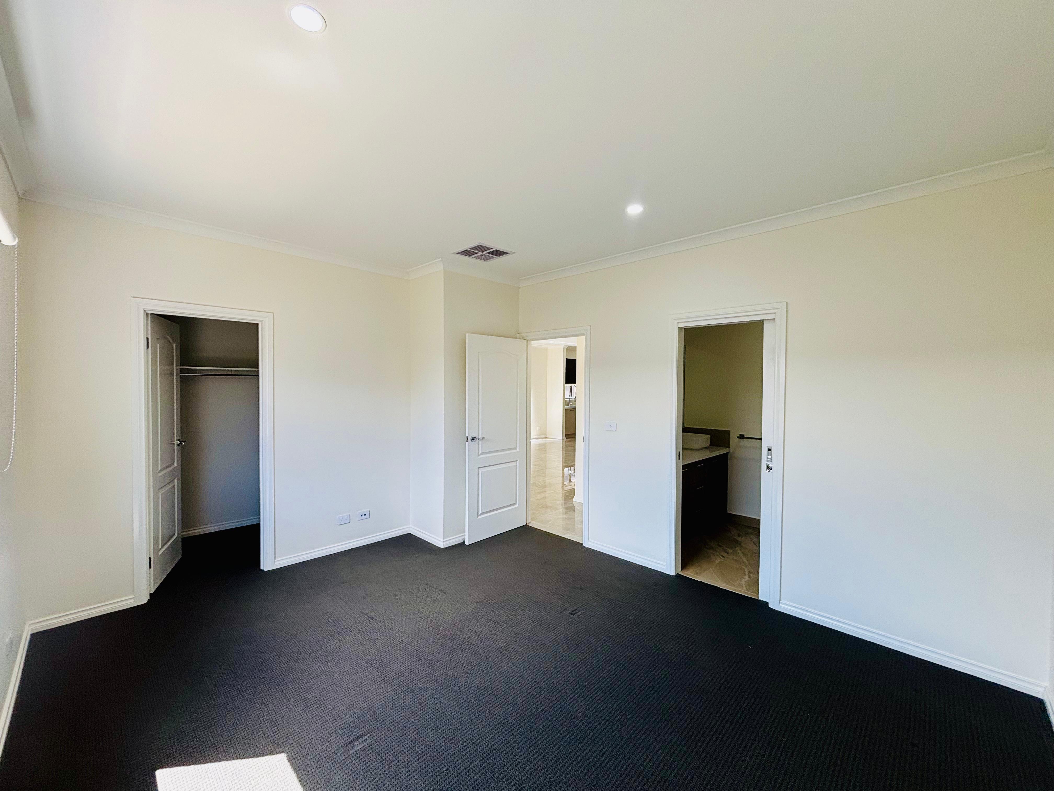 The master bedroom features a walk-in robe, and a luxurious ensuite. Three additional bedrooms include built-in robes and are serviced by a stylish central bathroom, with all bedrooms carpeted for extra ease. At the heart of the home is a modern kitchen equipped with stainless-steel appliances, stone benchtops, and ample bench and spacious walk-in pantry. The open-plan meals and living areas flow seamlessly into the low-maintenance backyard, complete with artificial lawn.