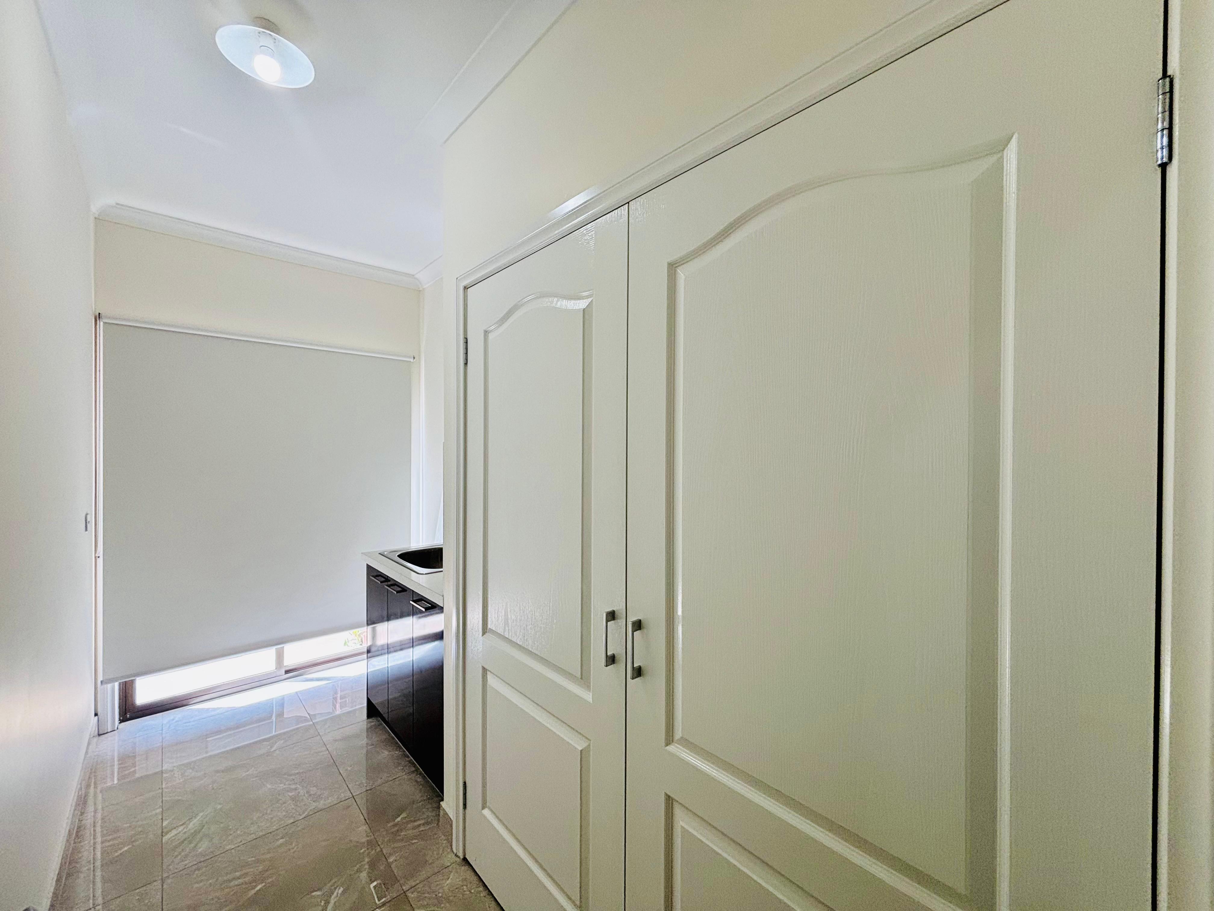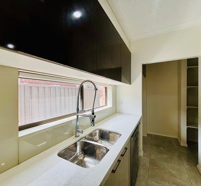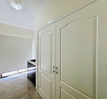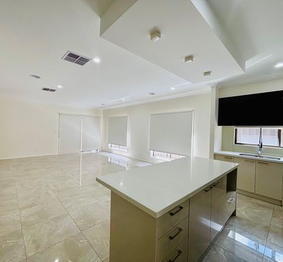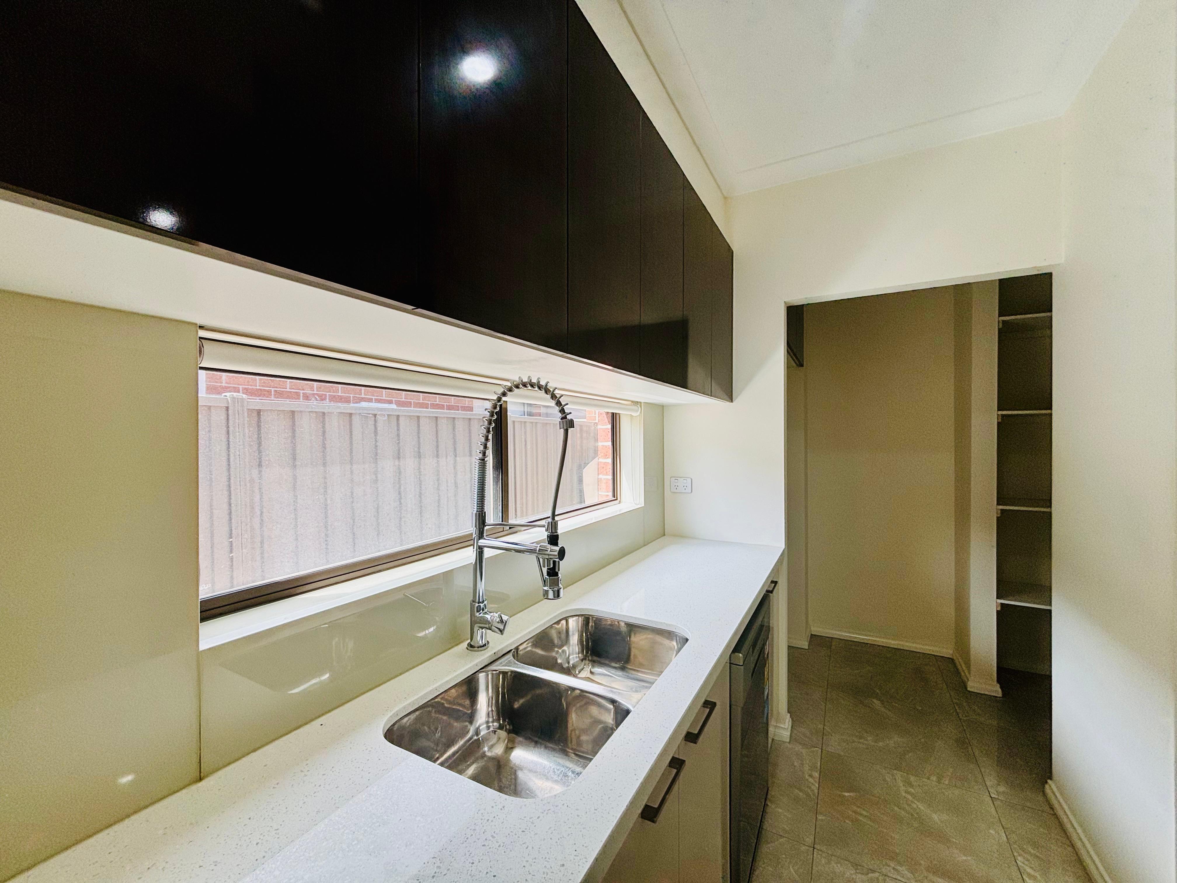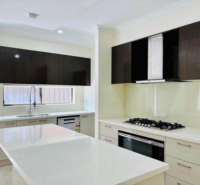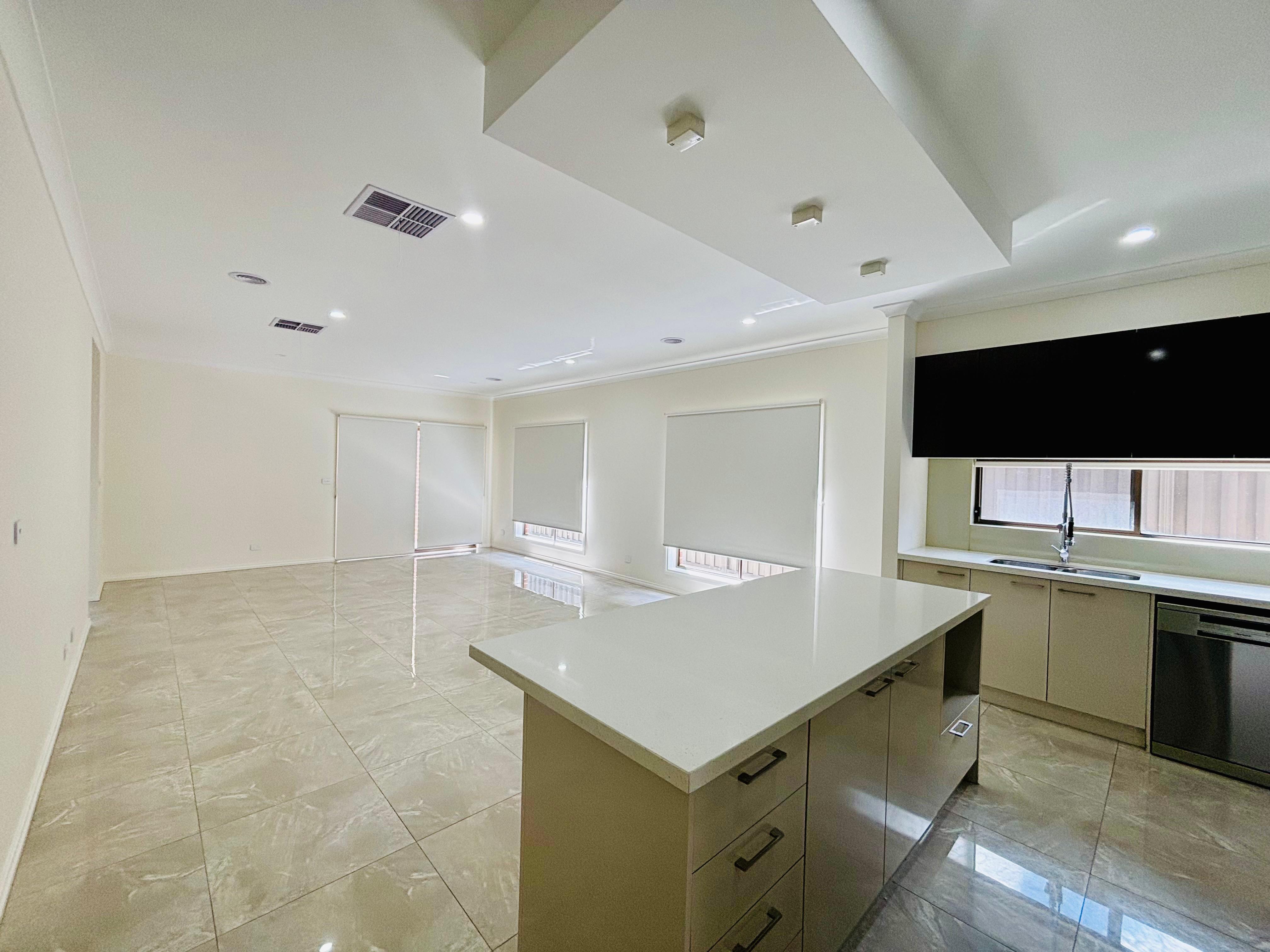 The master bedroom features a walk-in robe, and a luxurious ensuite. Three additional bedrooms include built-in robes and are serviced by a stylish central bathroom, with all bedrooms carpeted for extra ease. At the heart of the home is a modern kitchen equipped with stainless-steel appliances, stone benchtops, and ample bench and spacious walk-in pantry. The open-plan meals and living areas flow seamlessly into the low-maintenance backyard, complete with artificial lawn.