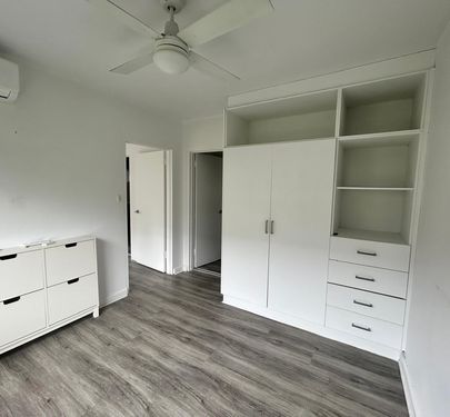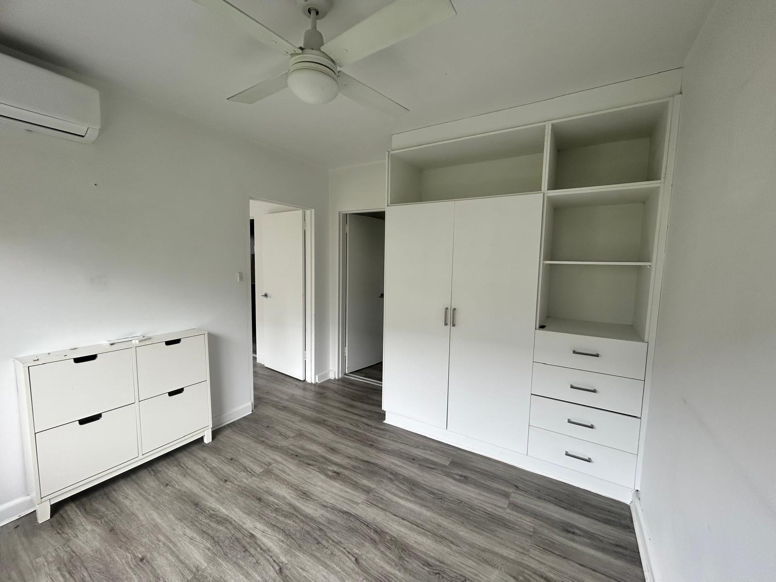 Comfortable Bedroom: A queen-sized bedroom with built-in robes, plus additional drawers and shelving for easy organization and storage.