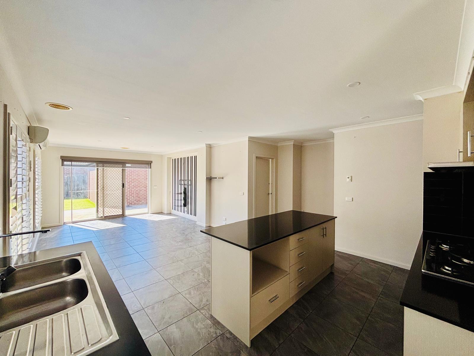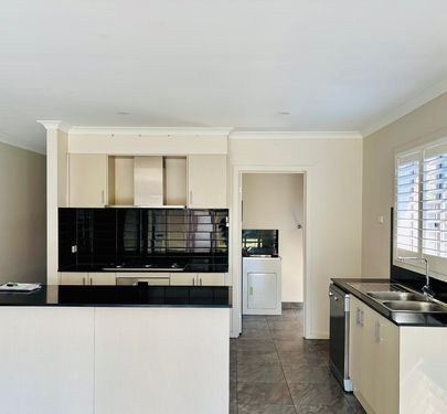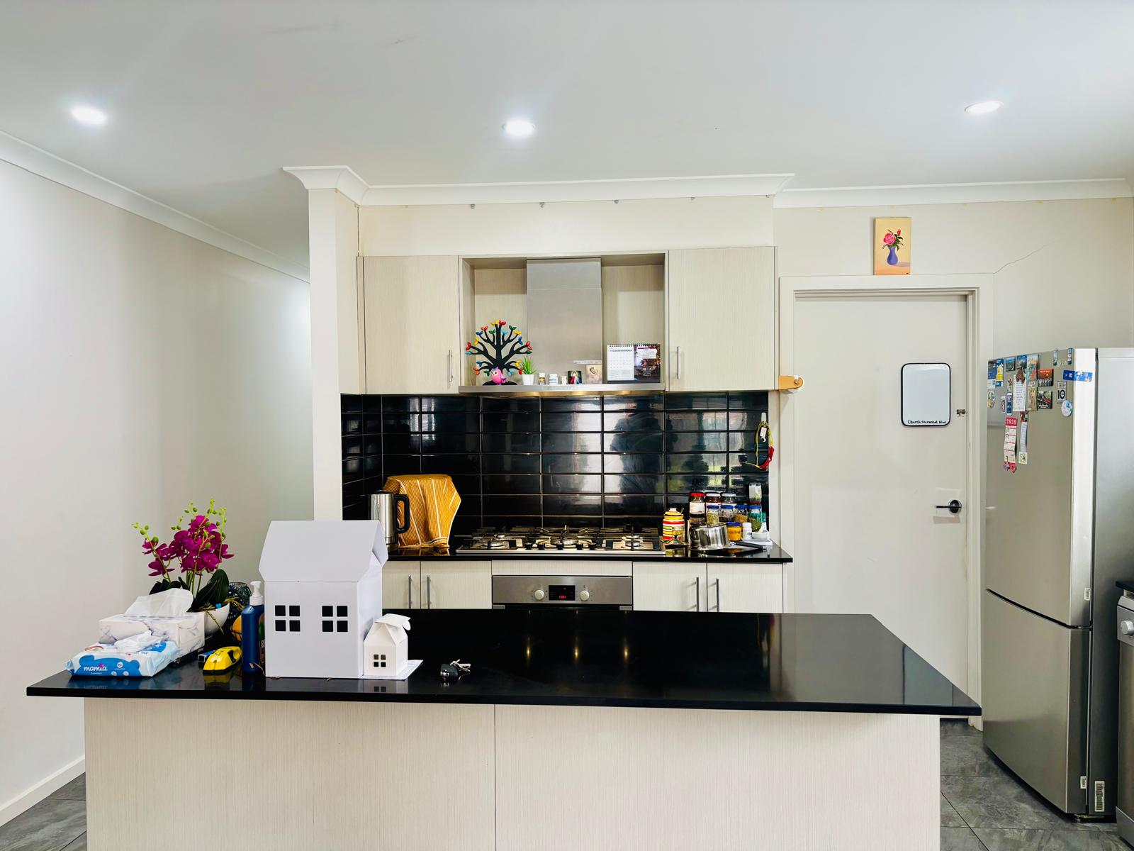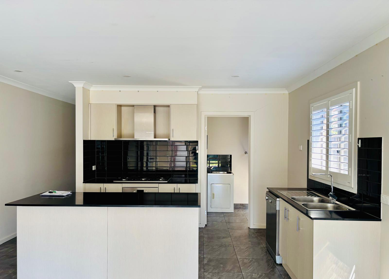 At the heart of the home is a modern kitchen equipped with stainless-steel appliances, stone benchtops, ample bench and cupboard space and walk-in pantry. The open-plan meals and living areas flow seamlessly into the low-maintenance backyard, complete with concreting and artificial lawn.