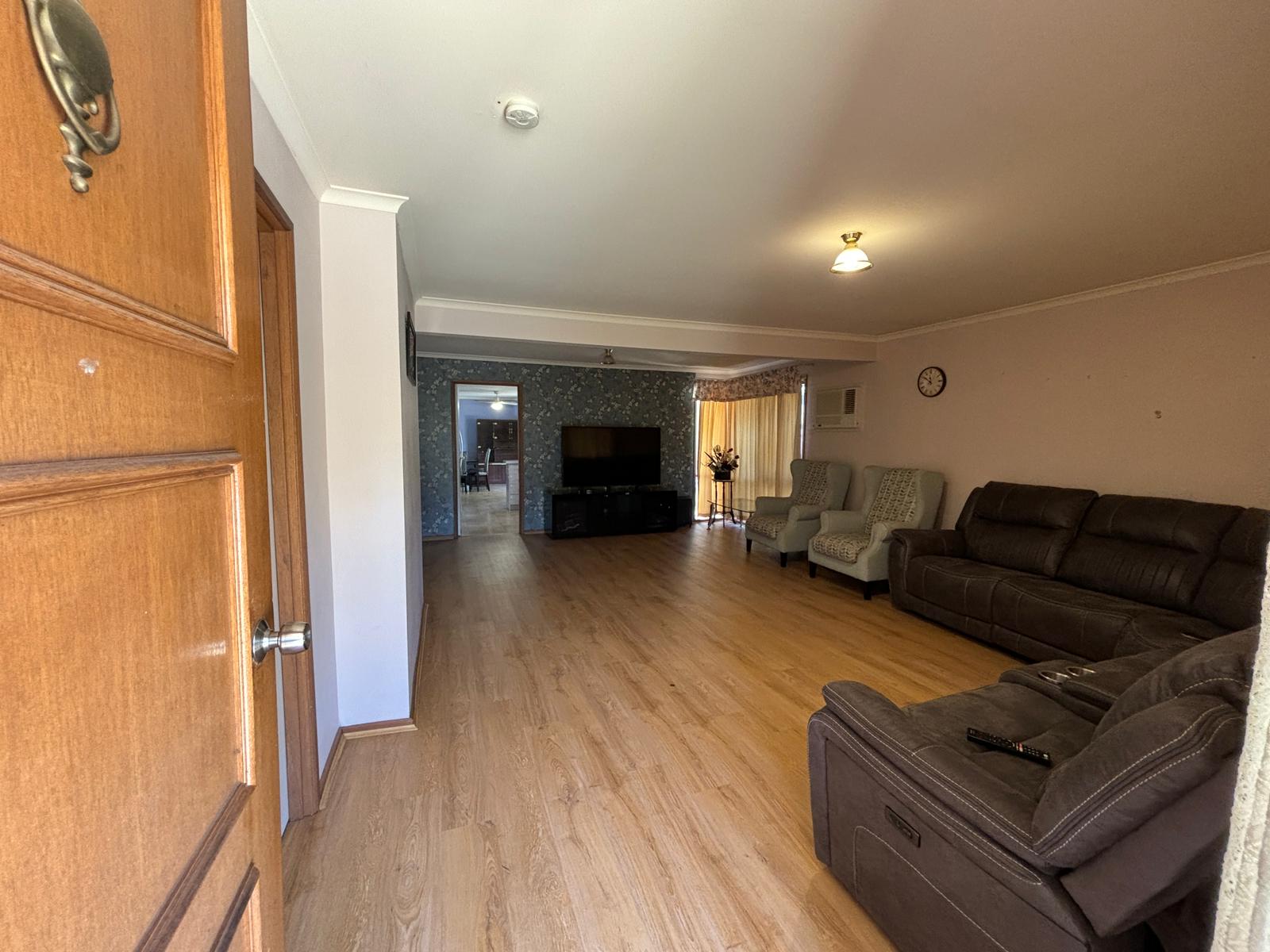 Comfort is assured year-round with ducted heating, a wall-mounted air conditioner in the lounge, and ceiling fans throughout most rooms. Completing the home is a spacious, fully fenced backyard, providing plenty of room for children to play or for those who enjoy outdoor living and gardening.
