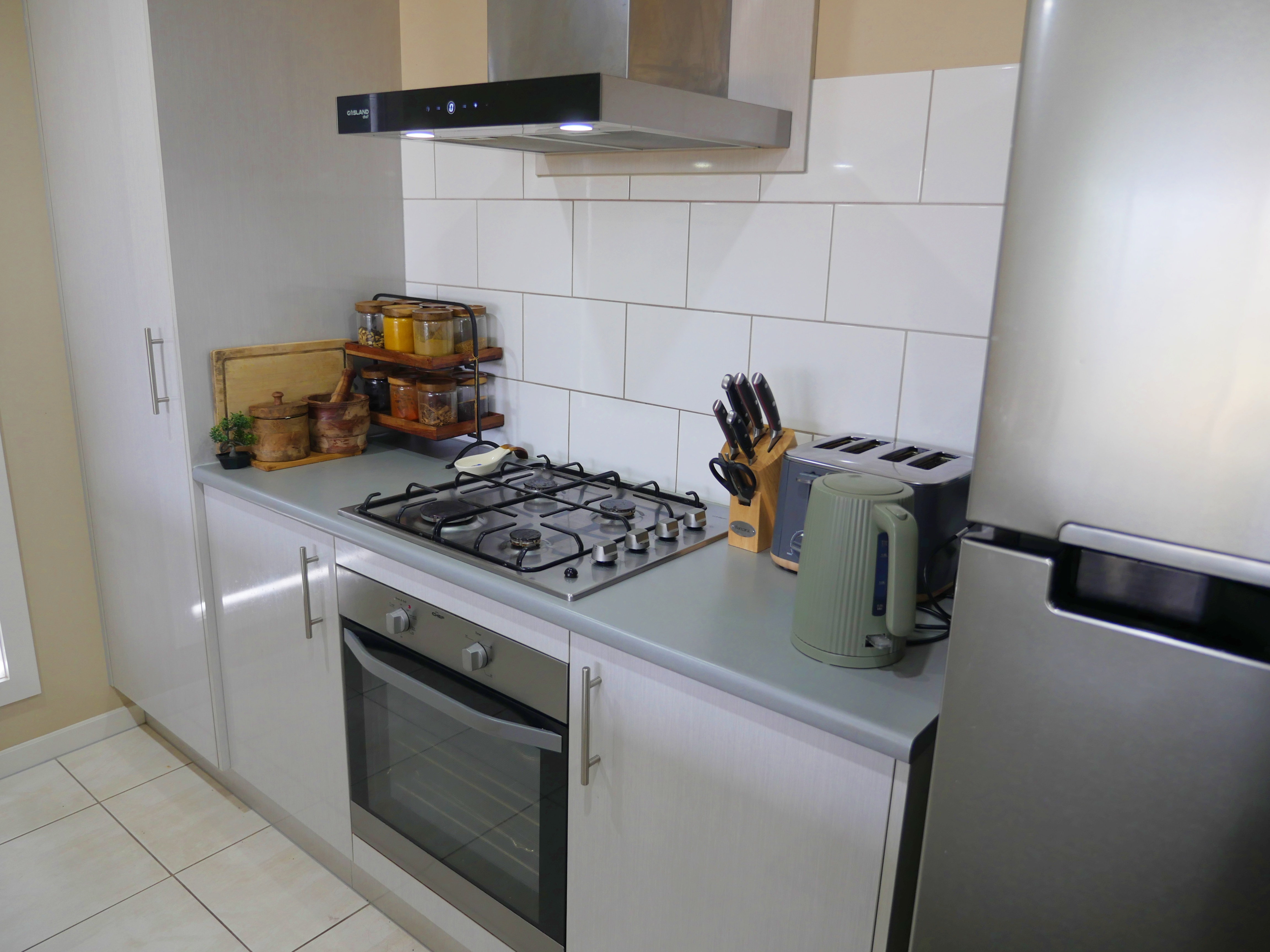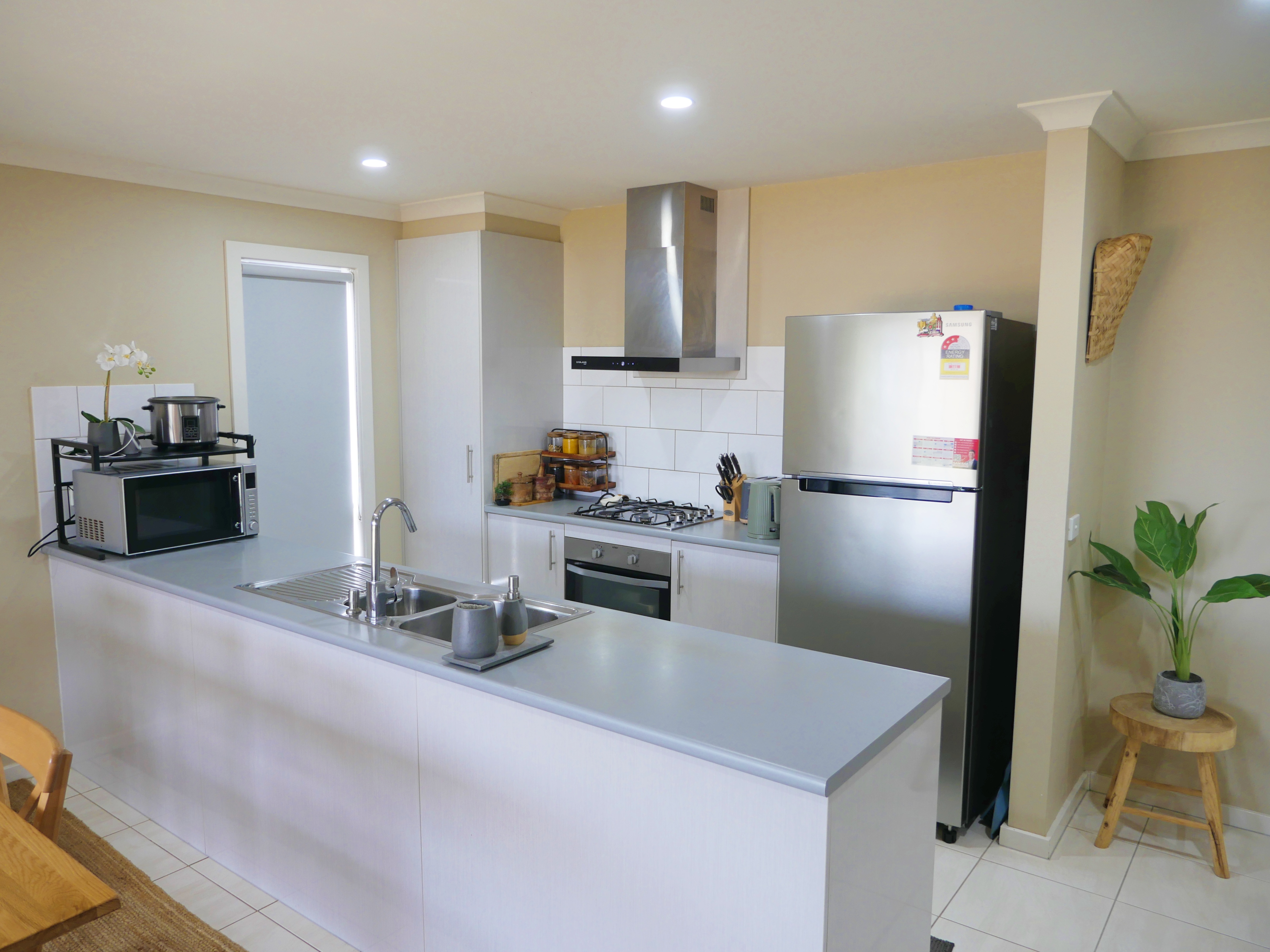 Spacious laundry with a panty.