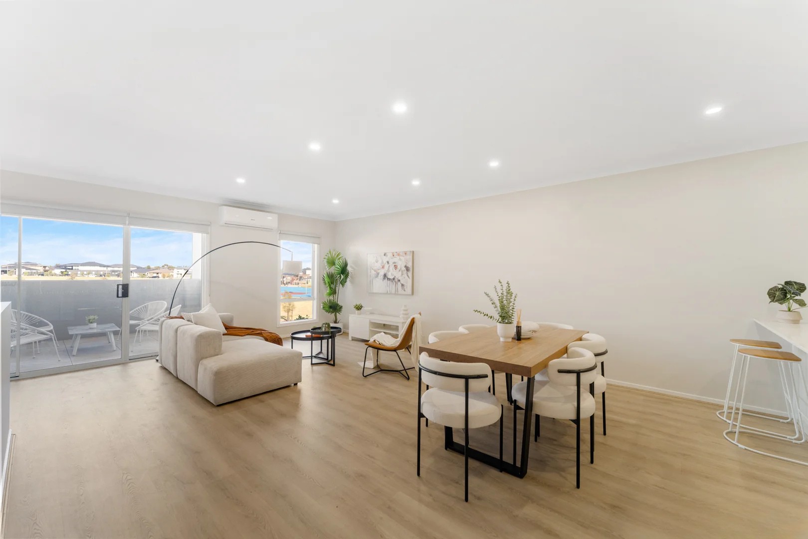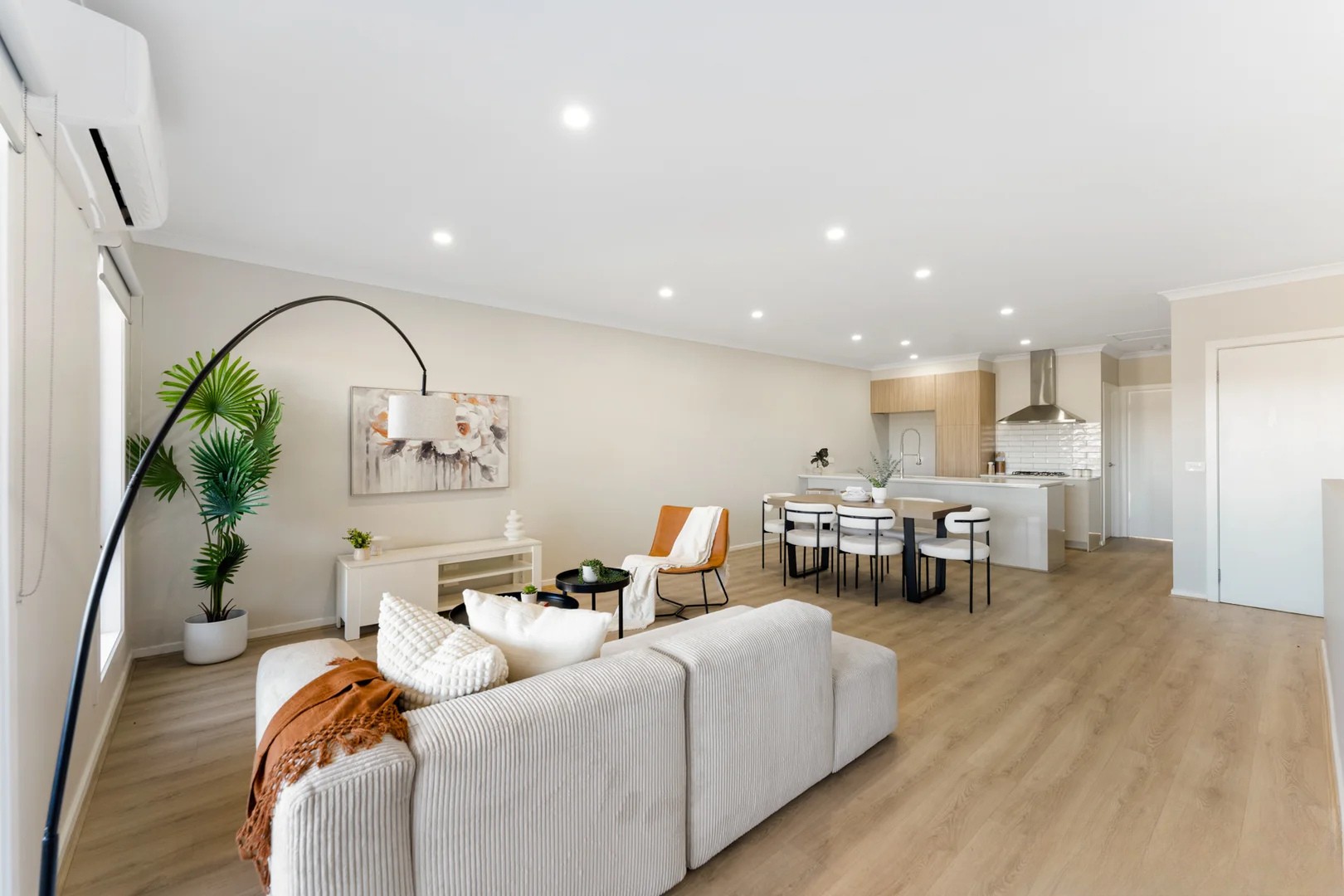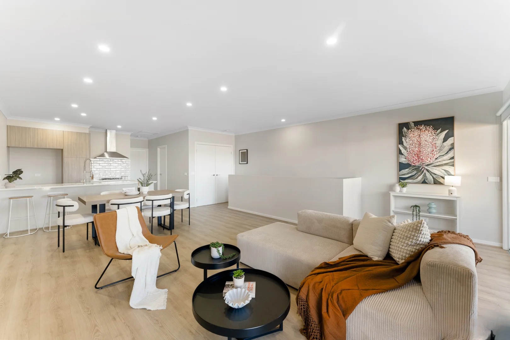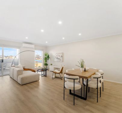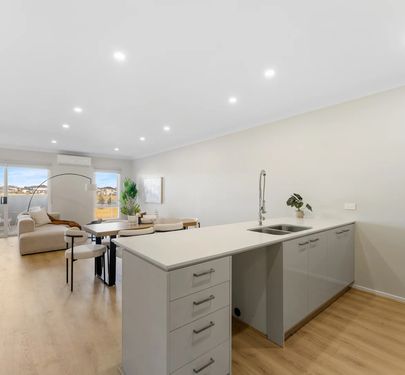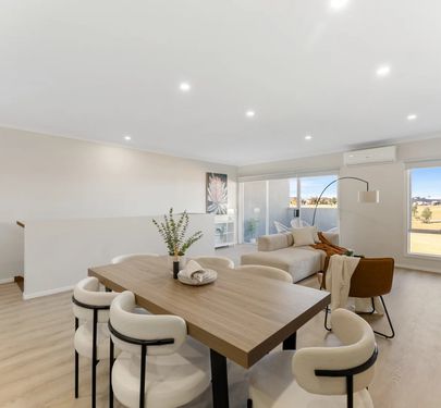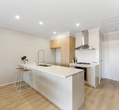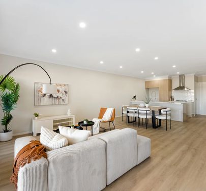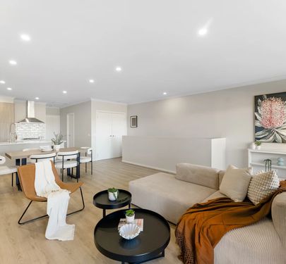 The heart of the home is the open-plan living and dining area, perfect for everyday living and entertaining. The modern kitchen comes complete with stone benchtops, stainless steel appliances, and ample storage, making it both practical and appealing.