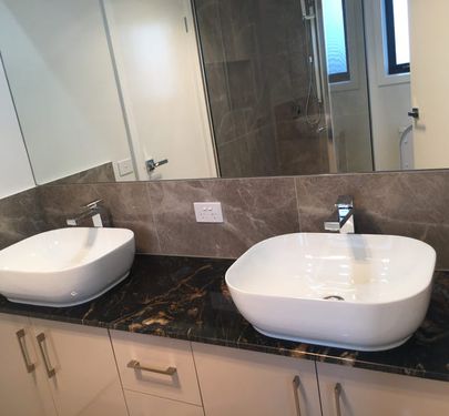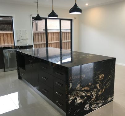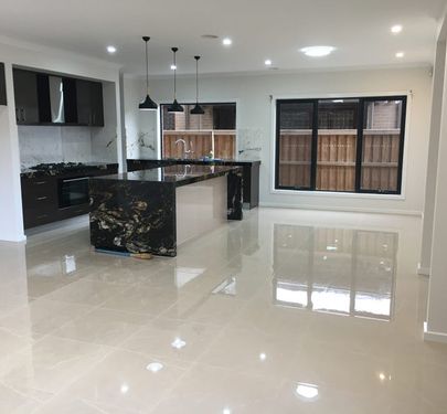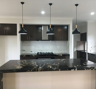 - Kitchen with natural granite benches, marble splash back, breakfast bar, butler's pantry and stainless-steel appliances including a dishwasher and 900mm cooking appliances