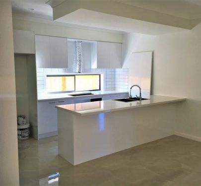 -Glass splash back & stone bench tops