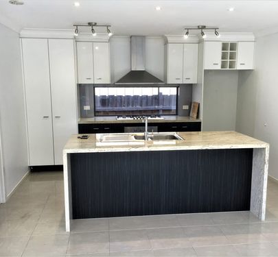 - Granite bench top with waterfall sides to island bench